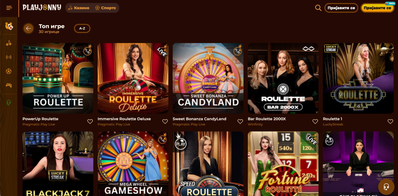 PlayJonny ima impresivnu kolekciju koja broji hiljade igara. Ova brojka se stalno menja kako platforma dodaje nove naslove, ali možete očekivati nekoliko hiljada slotova, veliki broj stolnih igara i bogatu ponudu igara uživo.