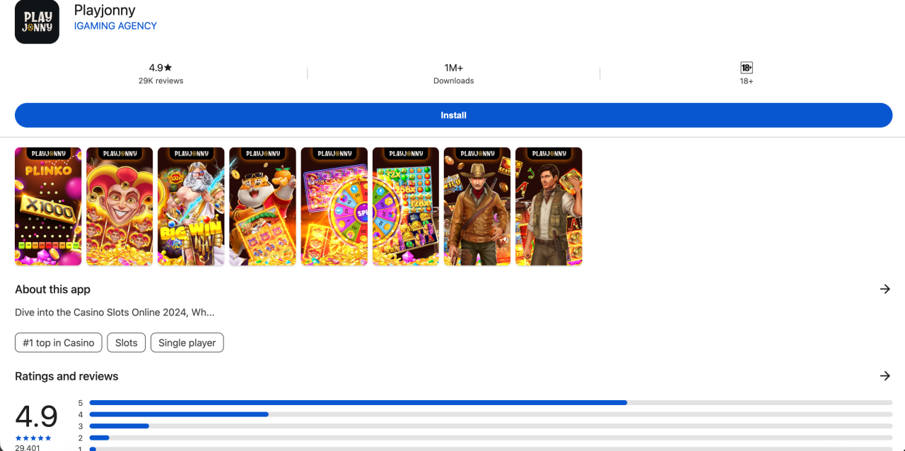 Vlasnici Android uređaja mogu lako preuzeti PlayJonny apk direktno sa zvaničnog sajta. Aplikacija pruža optimalno iskustvo igranja, sa brzim učitavanjem igara, intuitivnim korisničkim interfejsom i svim funkcijama dostupnim na desktop verziji. Pre instalacije PlayJonny apk, možda ćete morati da omogućite instalaciju aplikacija iz nepoznatih izvora u podešavanjima telefona. Aplikacija se redovno ažurira, garantujući stabilnost i dodavanje novih opcija.